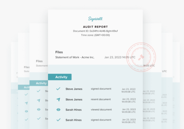 - Enhanced Security: SignWell ensures signatures are secure, encrypted, and legally binding, preventing forgery. Detailed audit trails further safeguard sensitive HR documents.