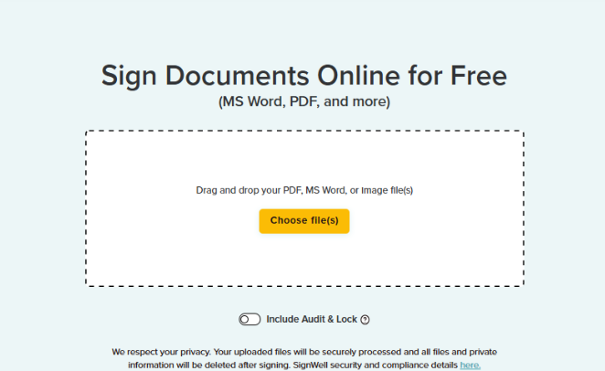 Note: All uploaded files are securely processed and automatically deleted after signing to ensure your privacy, including any personal data uploaded for the secure audit.
