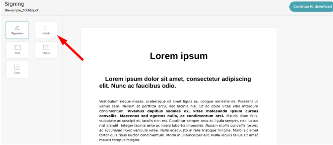 a. After placing your initials, click Continue to Download at the top right corner of the preview page.