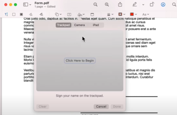 - Camera: Sign on paper, hold it up to your Mac’s camera, and Preview will capture it.