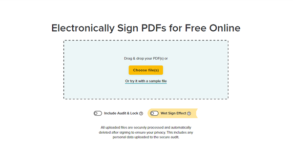 Note: All uploaded files are securely processed and automatically deleted after signing to ensure your privacy, including any personal data uploaded for the secure audit.