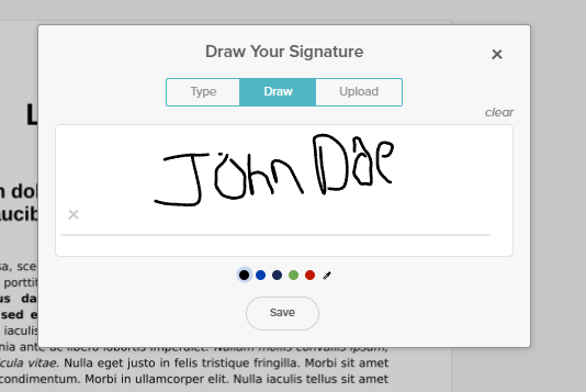 - Drag the Signature field to the area where you’d like to sign. You’ll have three options to add your signature: