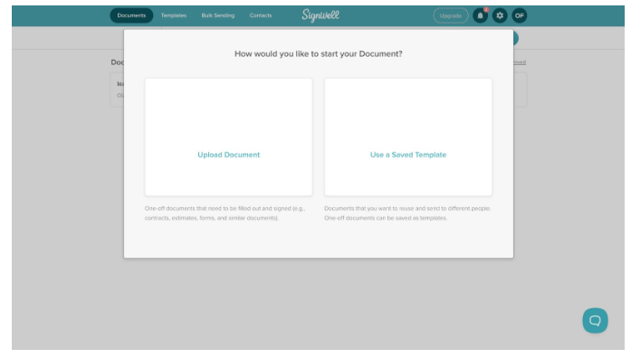 - Click “Upload Document” to add your document to SignWell and wait a few seconds.