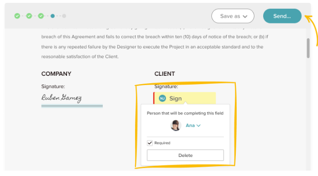 - Create a signature line for each person who needs to sign, then click send.