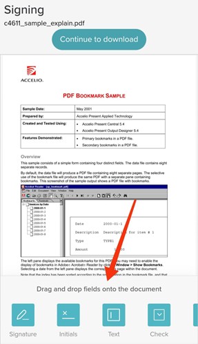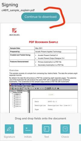 - After placing your signature, click Continue to Download at the top right corner of the preview page.