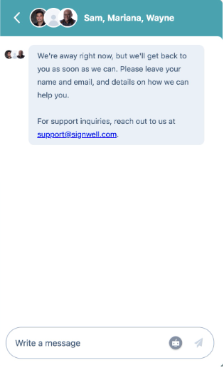 SignWell provides support by email, phone, or live chat whenever you need assistance. Our dedicated team ensures you get personalized help, not generic responses.